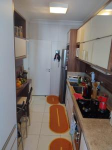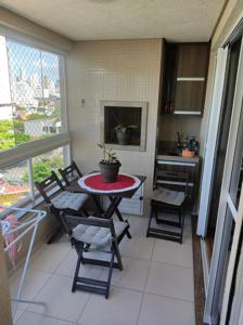 O imóvel conta com 2 suítes, lavabo, sacada com churrasqueira, vaga de garagem e 79,90 metros quadrados privativos.